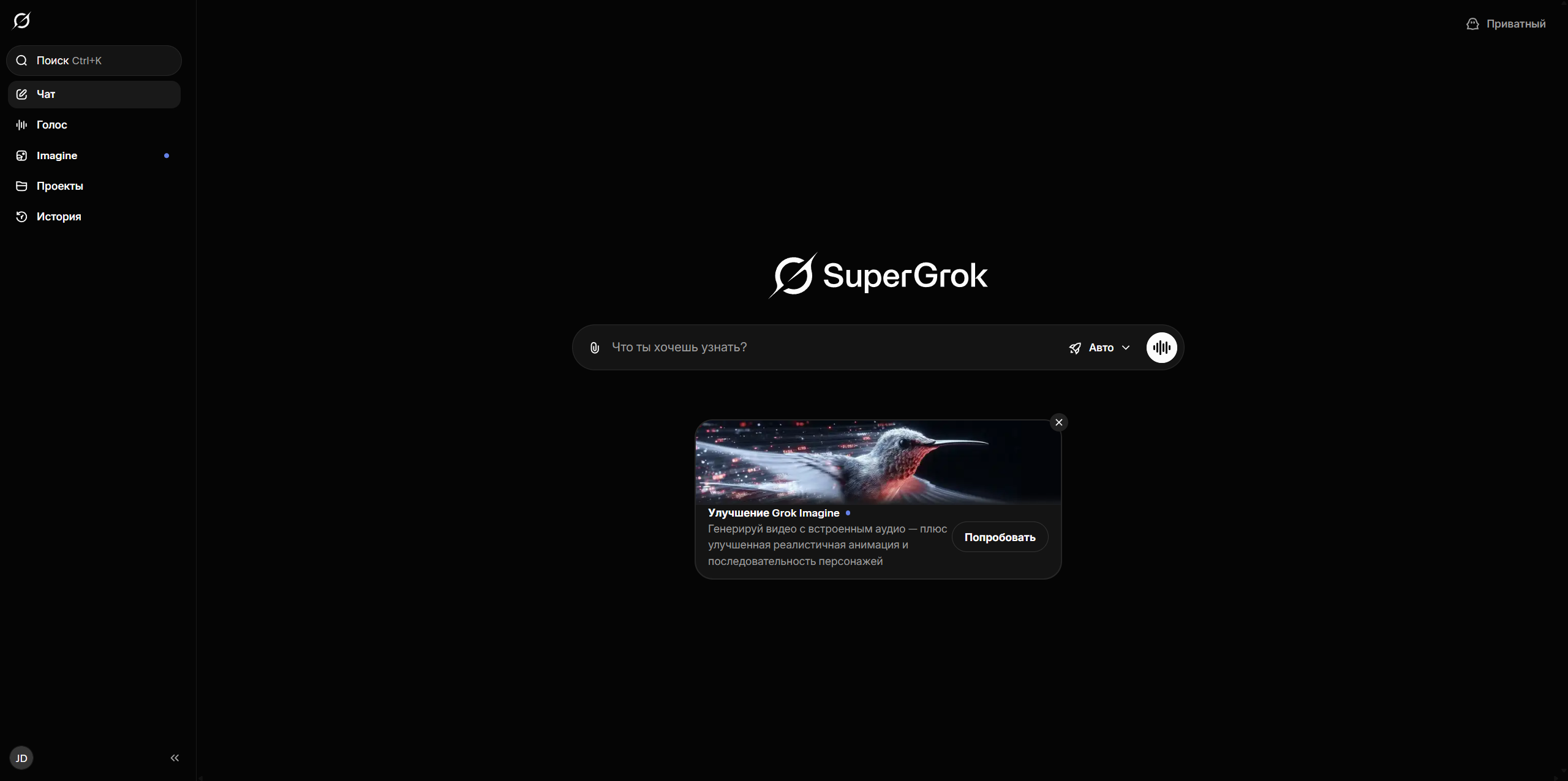 Интерфейс поддерживает русский язык. Доступ осуществляется через официальный сайт Grok.