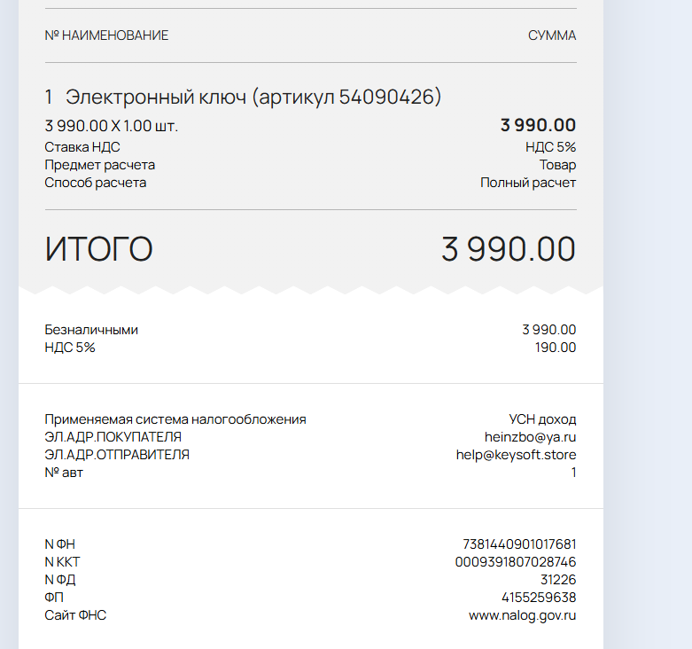 С 2019 года мы успешно занимаемся продажей цифровых товаров. Платежи принимаются через интернет-эквайринг Юkassa, что защищает вас от мошенничества и в случае каких-то проблем дает возможность отозвать свой платеж. При каждой покупке мы отправляем чек на email согласно Федеральному Закону № 54 «О применении контрольно-кассовой техники при осуществлении расчетов в Российской Федерации». О работе нашего интернет-магазина оставлено более 4000 положительных отзывов как на нашем сайте, так и на других сервисах.