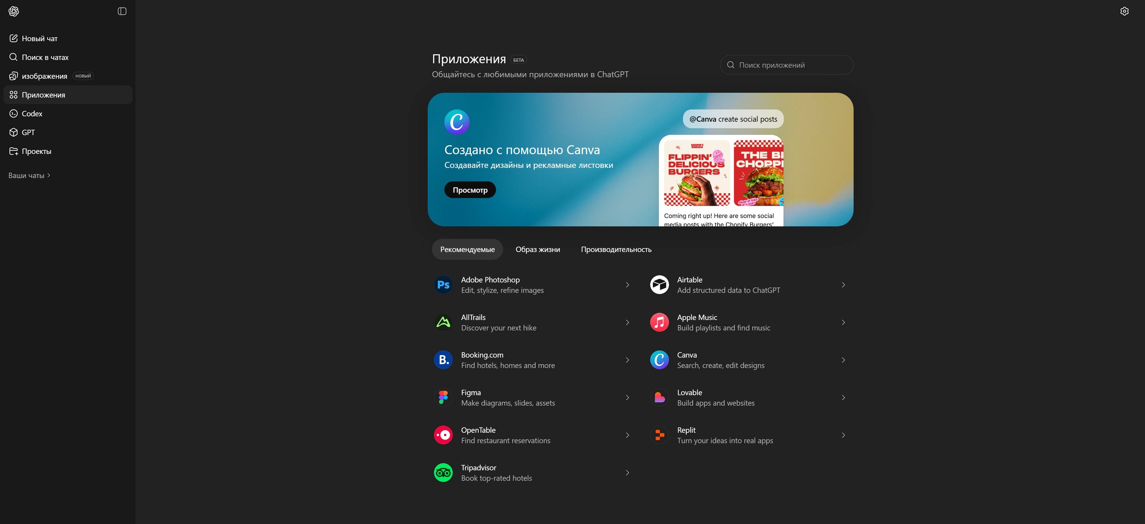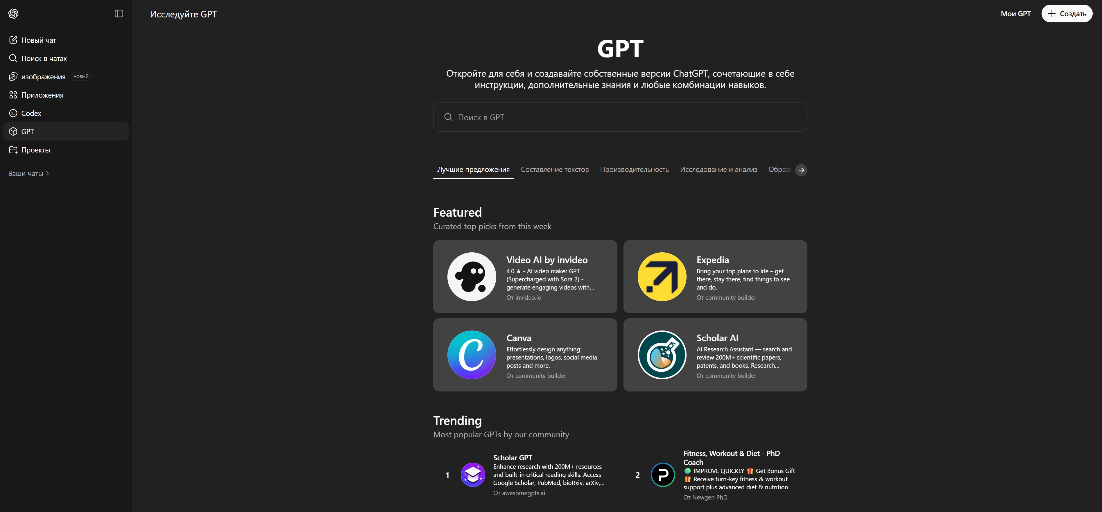 • Sora — генерация и редактирование видео прямо из ChatGPT (в поддерживаемых странах).