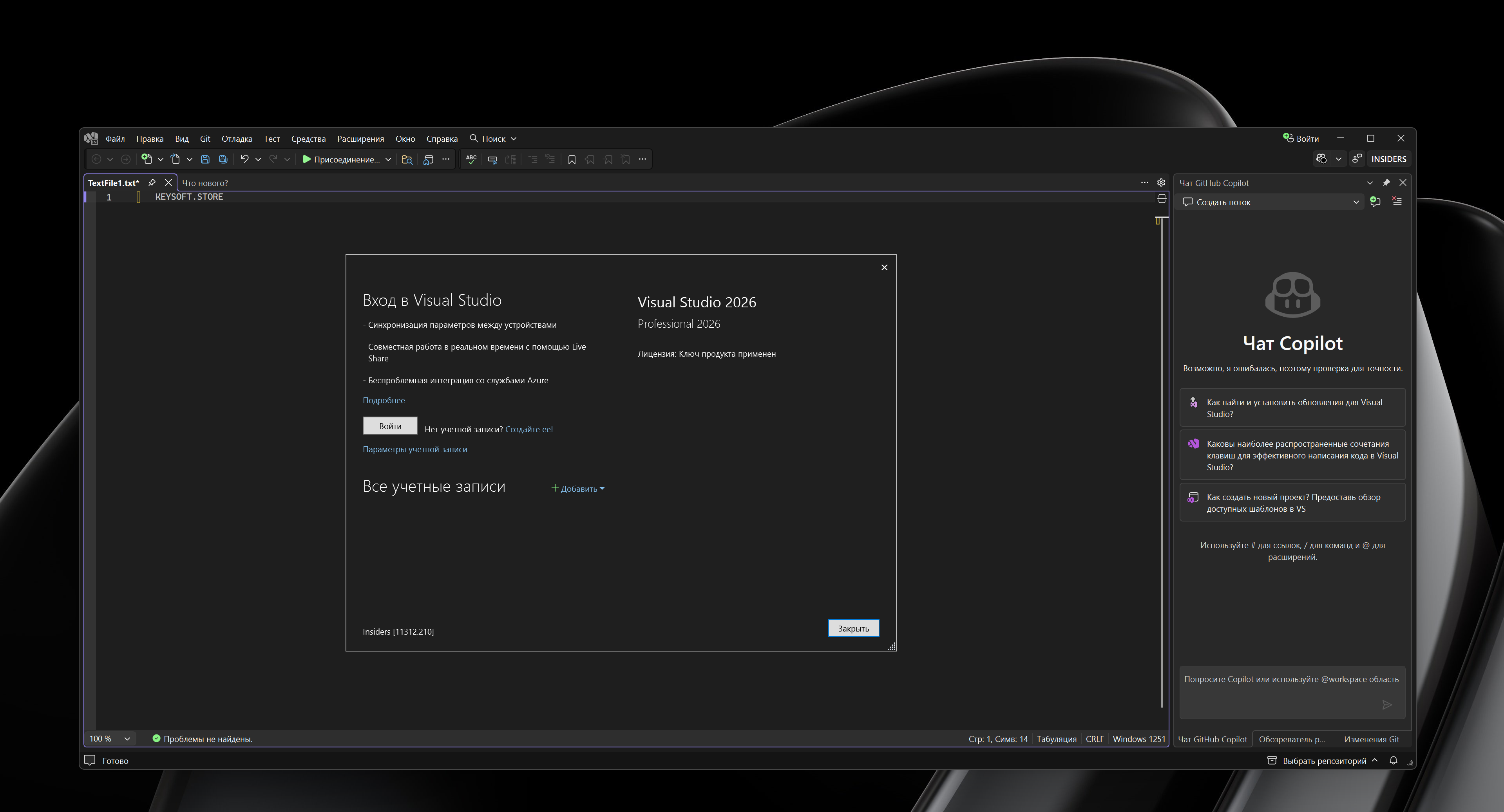 Лицензионный ключ активации для Visual Studio Professional 2026