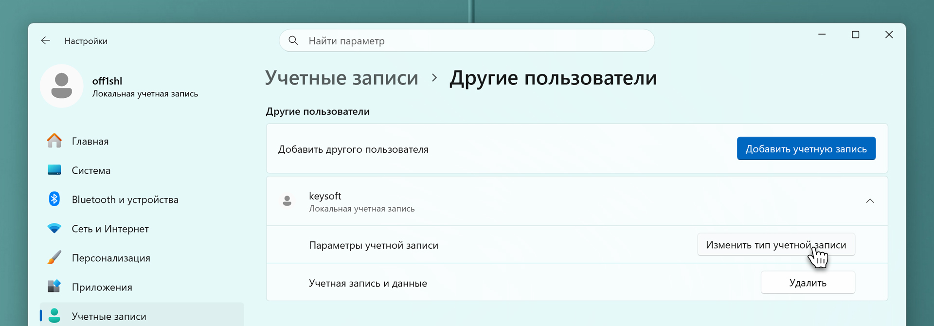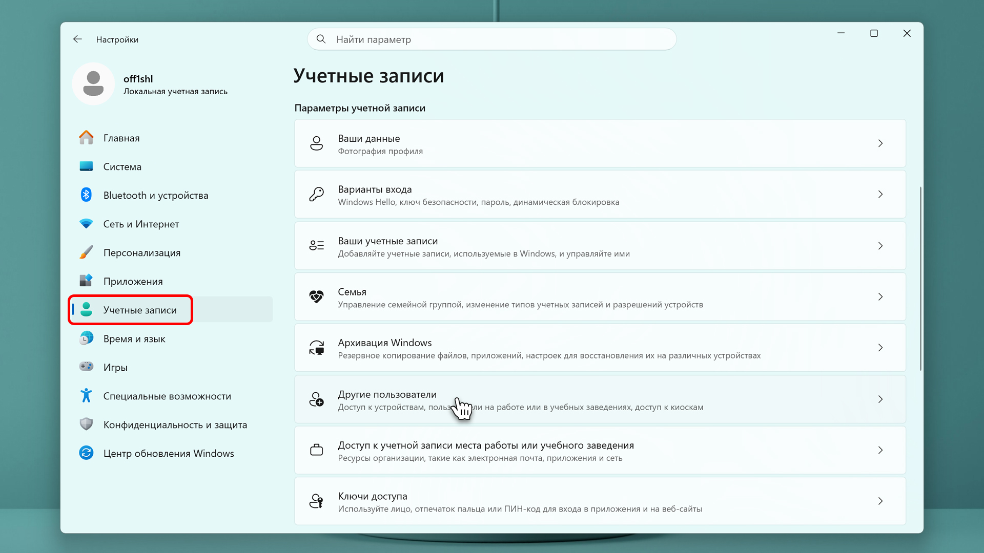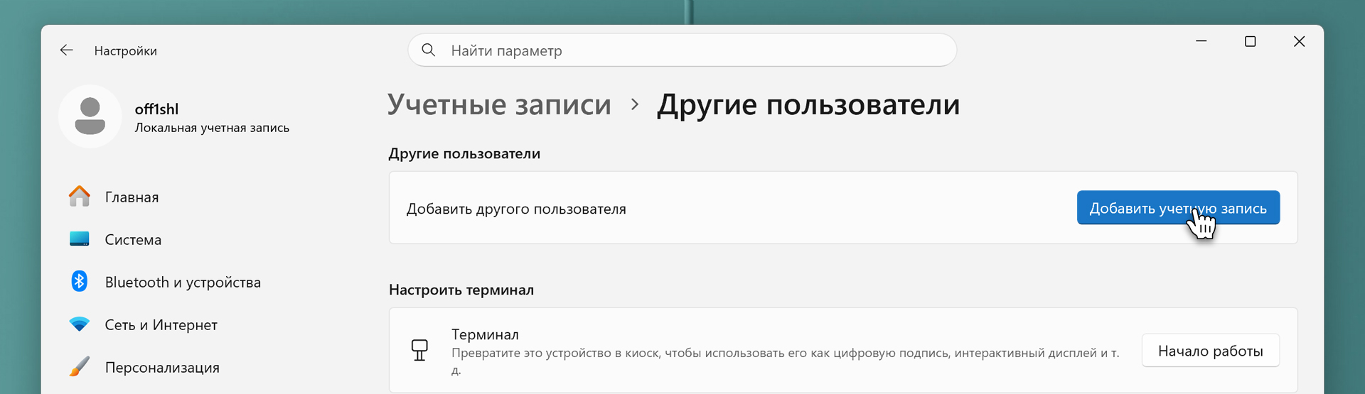 Перейдите по пути: Учетные записи ➔ Другие пользователи.
