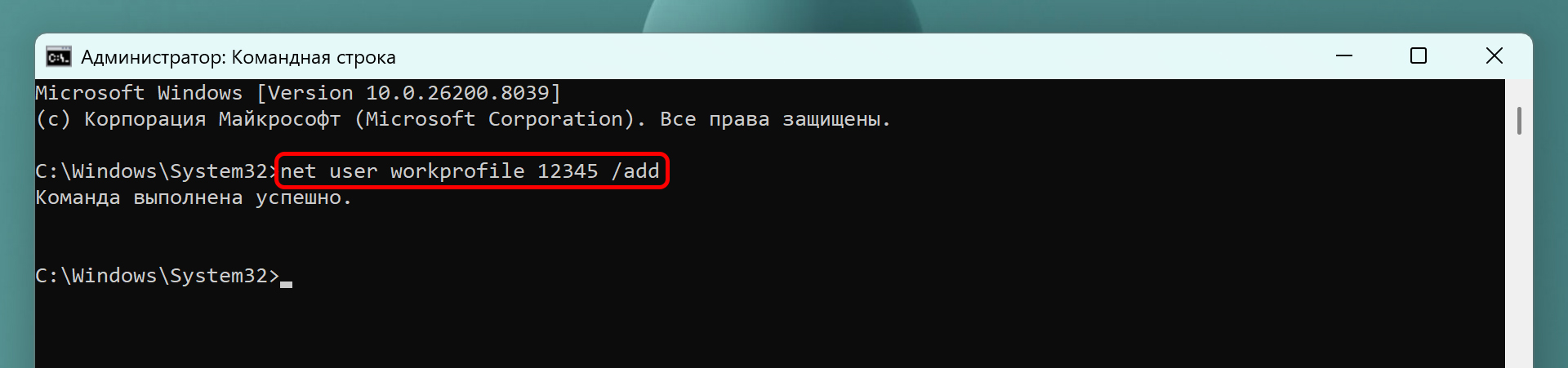 Введите команду (заменив слова на нужные вам данные) и нажмите Enter: net user Имя_пользователя Ваш_пароль /add