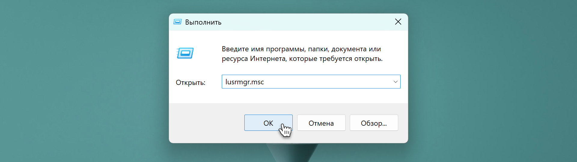 Нажмите Win + R, введите lusrmgr.msc и нажмите Enter.