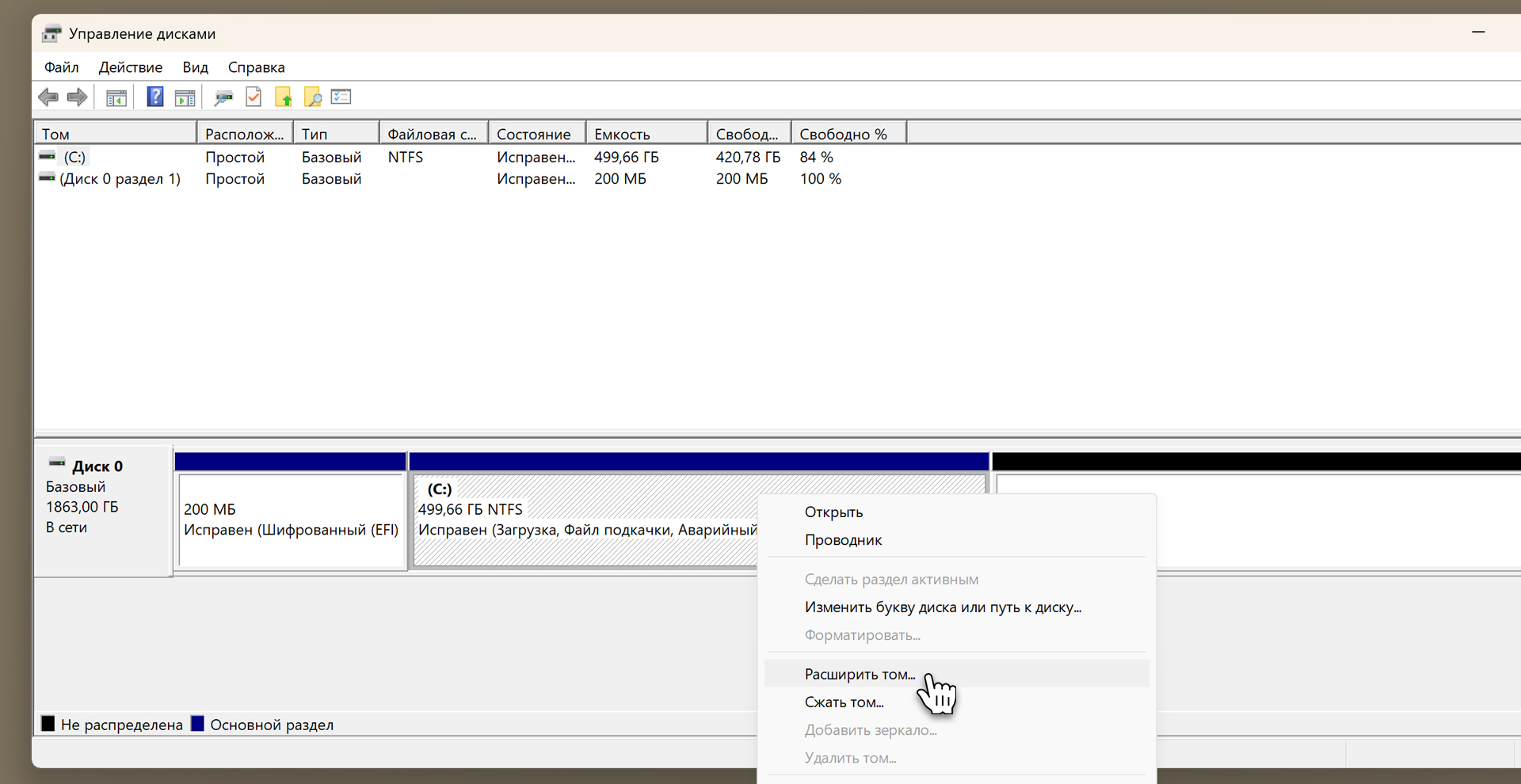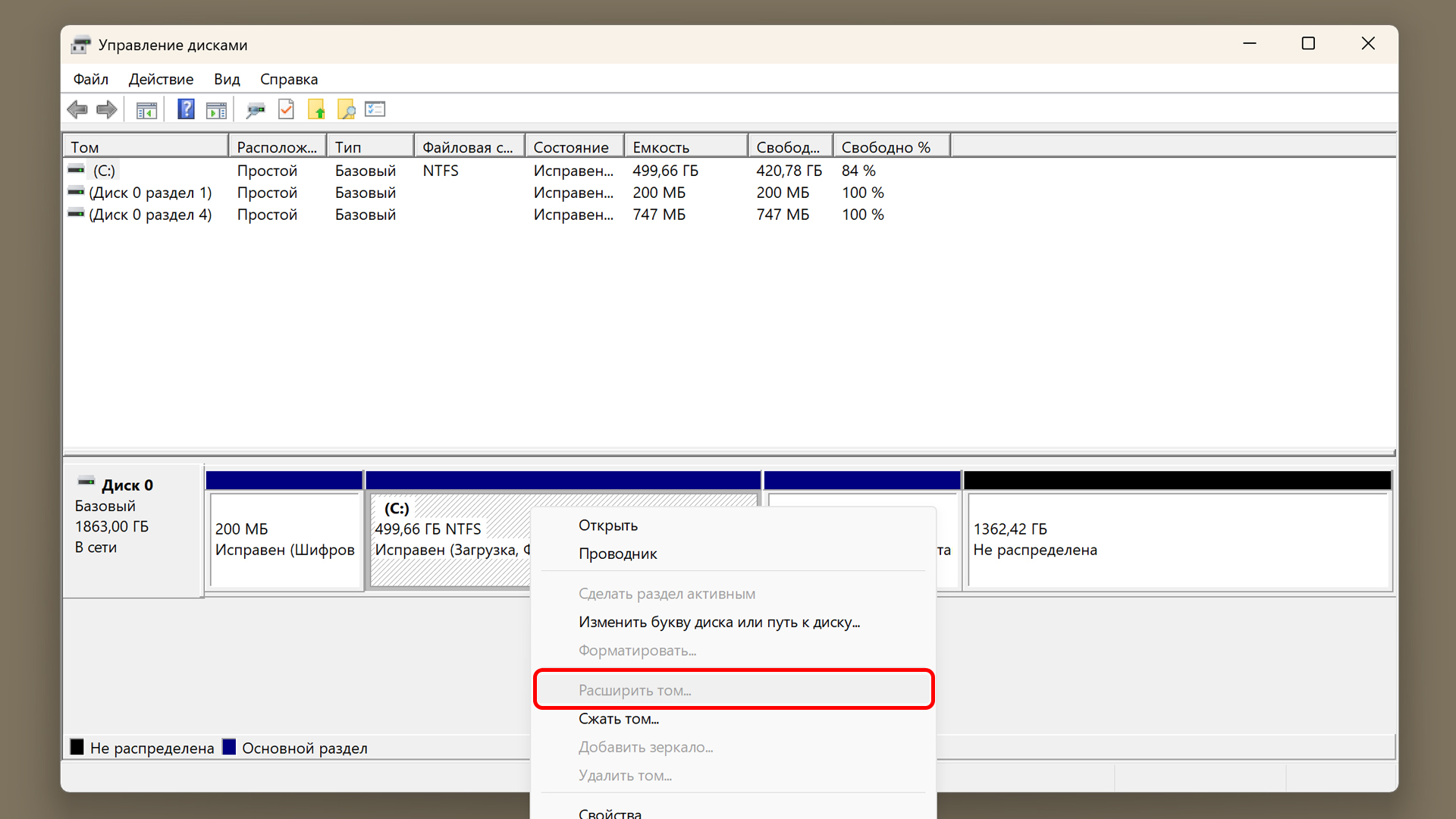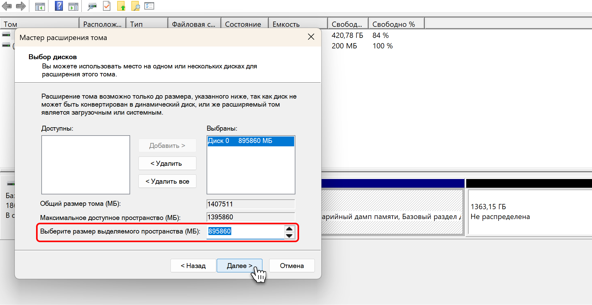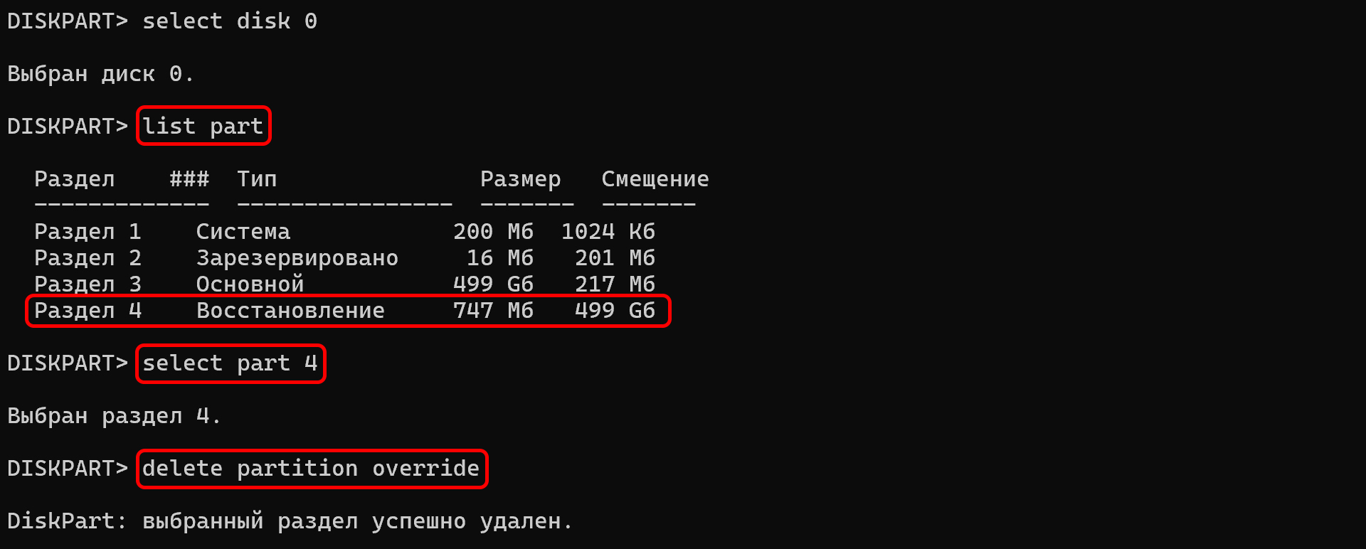 Назад OfficialBRO 27 Апр 2026 (Отредактировано: 27.04.2026) 43 0 Как увеличить диск C за счет диска D в Windows 11 и 10 Содержание статьи [ скрыть ] Инструкция Шаг 1. Удаление тома D Шаг 2. Расширение диска C Почему не получается расширить раздел (Кнопка серая)? Восстановление диска D Итог Системный диск C: переполнен и светится красным, а на диске D: при этом лежат сотни гигабайт свободного места? Логичное решение в такой ситуации: забрать часть памяти у диска D и отдать её диску C. ⚠️ ВАЖНО: Почему штатный способ работает не так, как вы ожидаете? Если вы зайдёте во встроенное «Управление дисками», нажмёте на диск D:, выберете «Сжать том» и освободите, например, 50 ГБ, вы обнаружите проблему, кнопка «Расширить том» на диске C будет гореть серым и не нажмётся. Чтобы обойти это ограничение штатными средствами, диск D придётся временно удалить целиком. / Инструкция Убедитесь, что на диске D у вас нет важных данных. Если они есть, временно перенесите их на флешку, внешний жёсткий диск или в облако. // Шаг 1. Удаление тома D 1 Нажмите правой кнопкой мыши по меню Пуск и выберите Управление дисками. 2 В нижней части окна найдите графическое отображение ваших дисков. Кликните правой кнопкой мыши по диску D: и выберите Удалить том. 3 Подтвердите удаление. Теперь на месте диска D появится чёрная область с надписью «Не распределена». // Шаг 2. Расширение диска C 1 Кликните правой кнопкой мыши по диску C: и выберите Расширить том. (Если кнопка так и осталась серой, переходите к следующему разделу статьи). 2 В открывшемся «Мастере расширения тома» нажмите Далее. 3 Укажите, сколько мегабайт вы хотите добавить к диску C (например, 50000 МБ — это около 50 ГБ), и завершите процесс. // Почему не получается расширить раздел (Кнопка серая)? Если после удаления диска D кнопка Расширить том так и не заработала, скорее всего, между диском C и неразмеченной областью застрял скрытый Раздел восстановления. Его необходимо удалить. Это никак не повлияет на встроенную среду восстановления Windows, однако при серьёзных поломках вы всегда сможете восстановить систему с помощью обычной загрузочной флешки. Если место на диске С вам сейчас нужнее, смело приступаем к удалению: 1 Нажмите правой кнопкой мыши по меню Пуск и выберите Терминал (Администратор) или Windows PowerShell (Администратор). 2 Введите команду diskpart и нажмите Enter. 3 Введите list disk, чтобы вывести список ваших физических накопителей. 4 Найдите диск, на котором установлена Windows (обычно это Диск 0), и выберите его командой select disk 0. 5 Введите команду list part, чтобы посмотреть список разделов на данном диске. 6 Найдите раздел с типом «Восстановление» (например, у меня он идёт под номером 4). Выберите его командой select part 4. 7 Введите финальную команду для принудительного удаления: delete partition override. 8 Готово! Теперь вернитесь в «Управление дисками» — мешающий раздел исчез, и вы можете без проблем расширить диск C (повторив Шаг 2). // Восстановление диска D Оставшуюся неразмеченную чёрную область нужно снова превратить в рабочий диск для ваших файлов. Кликните по ней правой кнопкой мыши ➔ Создать простой том ➔ Прокликайте Далее до конца, назначив букву D (или любую другую). Верните свои файлы обратно на новый, чистый диск! / Итог Работа с разделами диска требует внимательности, но встроенные утилиты Windows позволяют решить проблему нехватки места без скачивания сторонних программ. В завершение напомни