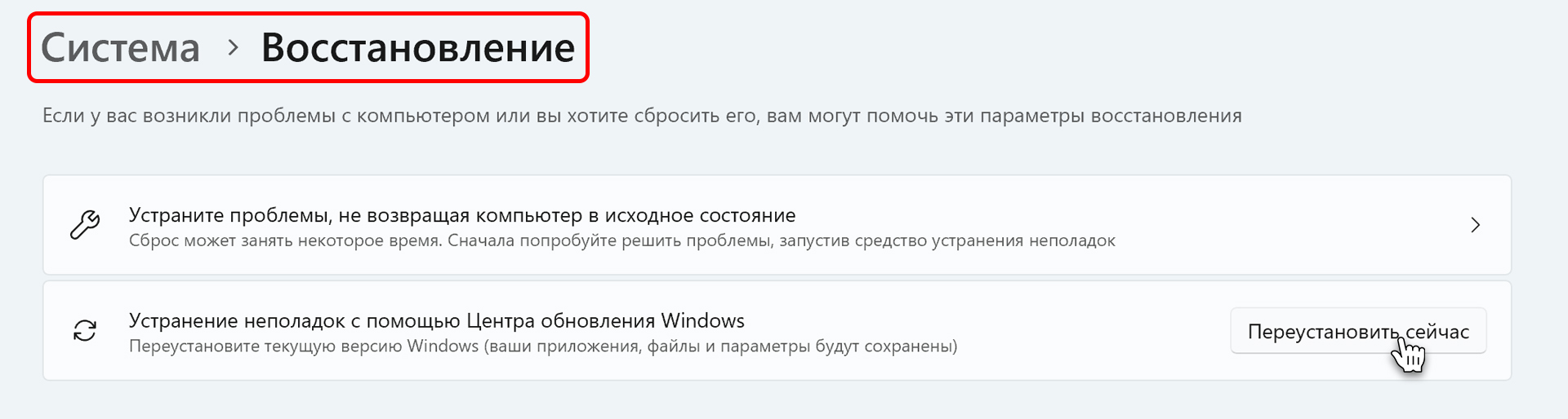 Назад OfficialBRO 20 Апр 2026 (Отредактировано: 20.04.2026) 29 0 Как переустановить Windows 11 и 10 без потери данных Содержание статьи [ скрыть ] Способ 1. Обновление на месте (Сохраняет файлы и программы) Способ 2. Устранение неполадок через Центр обновления Способ 3. Чистая установка с флешки (Без форматирования) Способ 4. Сброс к заводским настройкам Итог Иногда система начинает работать со сбоями, и единственным выходом становится её полная переустановка. Один из самых частых вопросов пользователей — как сделать это без потери данных. В актуальных версиях ОС предусмотрены встроенные инструменты, позволяющие сохранить не только важные файлы, но и все установленные программы. / Способ 1. Обновление на месте (Сохраняет файлы и программы) Это наиболее удобный вариант, который выполняется из уже работающей операционной системы. Фактически, это полноценная переустановка с созданием папки Windows.old и перезаписью всех системных файлов, но с полным сохранением ваших данных и софта. // Инструкция: 1 Скачайте оригинальный ISO-образ Windows 11 или 10. 2 Смонтируйте его в системе: правый клик по файлу ➔ Подключить. 3 Откройте появившийся виртуальный привод и запустите файл setup.exe. 4 В процессе подготовки появится экран выбора параметров. Обязательно убедитесь, что выбрана опция «Сохранить личные файлы и приложения». 5 Нажмите «Установить» и дождитесь окончания процесса (компьютер несколько раз перезагрузится). / Способ 2. Устранение неполадок через Центр обновления В актуальных сборках Windows 11 появилась мощная функция восстановления прямо в меню параметров. // Что важно знать: Метод использует оригинальные файлы, скачанные напрямую с серверов Microsoft. Следовательно, для этого способа обязательно требуется активное подключение к Интернету. Все программы и личные данные останутся нетронутыми. // Инструкция: 1 Откройте Параметры (Win + I). 2 Перейдите в раздел Система ➔ Восстановление и найдите пункт «Устранение неполадок с помощью Центра обновления Windows». 3 Нажмите кнопку Переустановить сейчас. 4 Появится всплывающее окно с подтверждением, что система восстановит свои компоненты, а ваши файлы и приложения останутся на месте. Нажмите ОК. 5 Система скачает необходимый пакет восстановления и перезапишет повреждённые компоненты в фоновом режиме. / Способ 3. Чистая установка с флешки (Без форматирования) Если система не загружается дальше логотипа, придётся использовать загрузочный USB-накопитель. В этом случае установленные программы не сохранятся, но личные файлы выживут. // Как это работает: Ваши данные из папок (Рабочий стол, Документы, Изображения) будут перемещены в автоматическую папку Windows.old на диске C:. Важно: эта папка автоматически удаляется через 10–30 дней, поэтому нужные файлы необходимо извлечь оттуда сразу после переустановки. Файлы вне диска C: не будут затронуты вообще. // Инструкция: 1 Начните стандартный процесс чистой установки Windows с флешки. Подробнее об этом читайте в нашей статье: Rufus — от создания загрузочной флешки до установки Windows. 2 На этапе выбора раздела выберите ваш текущий системный диск, но не форматируйте и не удаляйте его. Просто нажмите «Далее». Система выдаст предупреждение о создании папки Windows.old — соглашайтесь. / Способ 4. Сброс к заводским настройкам Это встроенная функция отката, которая позволяет очистить систему от мусора и ошибок. Она позволяет сох