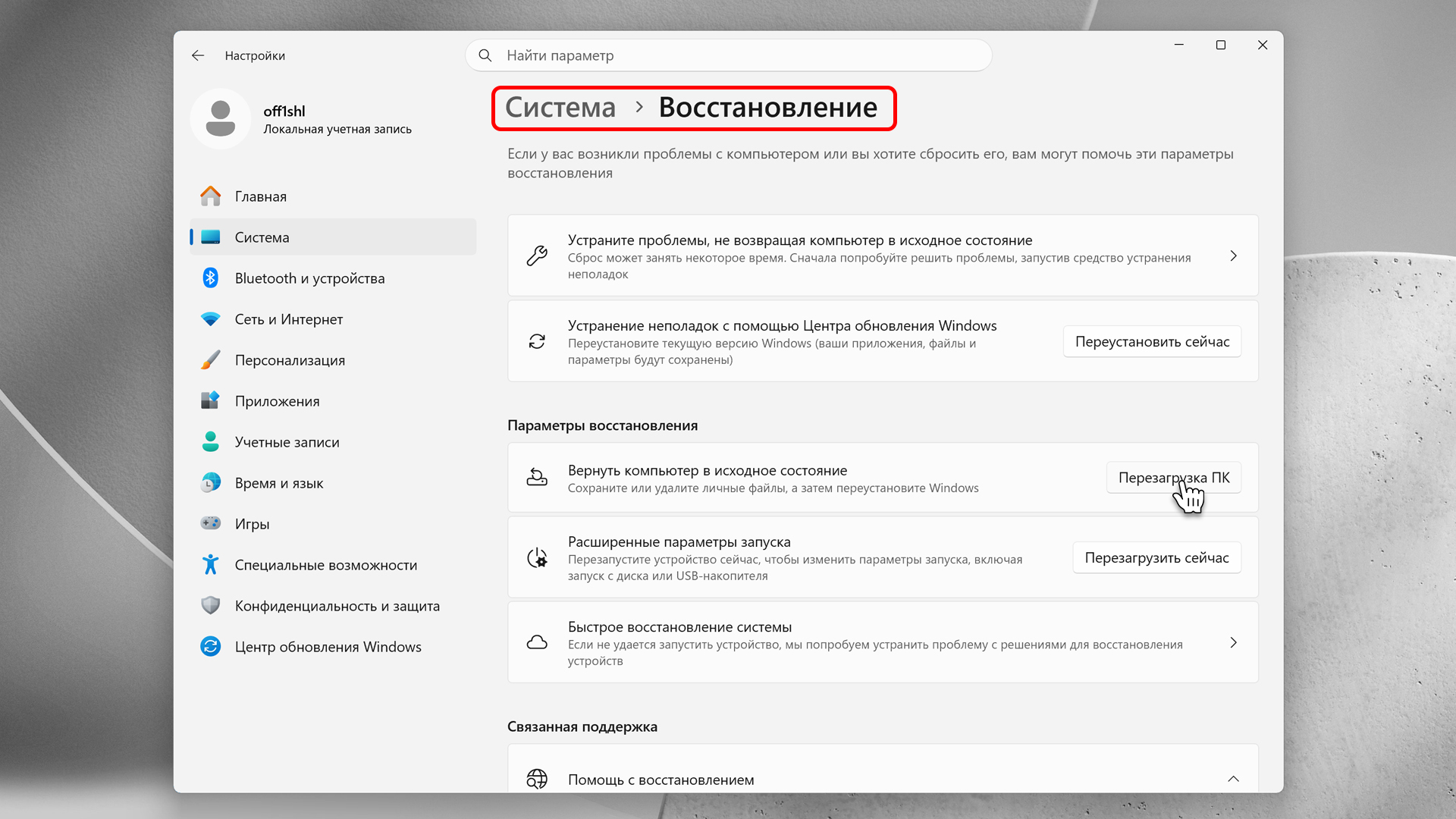Назад OfficialBRO 04 Мар 2026 (Отредактировано: 04.03.2026) 29 0 Как сбросить Windows 11 и 10 до заводских настроек (без потери файлов) Содержание статьи [ скрыть ] Способ 1. Сброс через Параметры (Если Windows запускается) Инструкция для Windows 11: Инструкция для Windows 10: Далее система предложит вам два важных выбора: Способ 2. Сброс через среду восстановления (Если Windows не загружается) Итог Со временем компьютер начинает работать медленнее. Накопление системного мусора, неудачные обновления драйверов, остатки удаленных программ или пойманный в сети вирус могут превратить работу за ПК в мучение. В таких случаях, когда стандартная очистка реестра и антивирусы уже не помогают, самым надежным решением будет сброс Windows до заводских настроек. Эта процедура вернет систему в то свежее состояние, в котором она была в первый день после установки. Рассмотрим два простых способа восстановить компьютер, даже если Windows отказывается загружаться. Способ 1. Сброс через Параметры (Если Windows запускается) Это самый простой и безопасный метод. Он позволяет переустановить систему, сохранив при этом ваши фотографии, документы и рабочие файлы. Инструкция для Windows 11: 1. Нажмите сочетание клавиш Win + I, чтобы открыть Параметры. 2. Перейдите по пути: Система -> Восстановление. 3. В блоке «Вернуть компьютер в исходное состояние» нажмите кнопку Перезагрузка ПК. Инструкция для Windows 10: 1. Откройте Параметры (Win + I). 2. Перейдите в раздел Обновление и безопасность -> Восстановление. 3. В блоке «Вернуть компьютер в исходное состояние» нажмите кнопку Начать. Далее система предложит вам два важных выбора: 1. Сохранить мои файлы или Удалить всё? Если компьютер просто медленно работает, выбирайте «Сохранить мои файлы». Ваши документы, фото и другие данные останутся на месте, удалятся только программы и настройки. Если же вы готовите ПК к продаже или поймали опасный вирус, выбирайте «Удалить всё». 2. Загрузка из облака или Локальная переустановка? Облако загружает новую версию Windows из интернета. Локальная переустановка использует системные файлы с вашего компьютера (это быстрее, но может не работать, если файлы повреждены). Лучше выбрать облако. После выбора параметров подтвердите действие. Компьютер несколько раз перезагрузится, а сам процесс займет от 20 до 40 минут. Способ 2. Сброс через среду восстановления (Если Windows не загружается) Что делать, если компьютер ловит cиний экран смерти (BSOD) еще до появления рабочего стола? Сброс можно запустить из специальной среды восстановления Windows RE. Как туда попасть: 1. Включите компьютер. Как только появится логотип Windows или производителя материнской платы, зажмите кнопку питания на системном блоке (или ноутбуке) на 5–7 секунд, чтобы жестко выключить ПК. 2. Повторите эту процедуру (включение — жесткое выключение) три раза подряд. 3. На четвертый раз Windows поймет, что что-то пошло не так, и запустит синий экран восстановления. 4. В появившемся меню выберите: Поиск и устранение неисправностей -> Вернуть компьютер в исходное состояние. 5. Дальнейшие шаги (сохранение файлов и тип загрузки) полностью аналогичны первому способу. Итог Сброс до заводских настроек — это спасение для любой зависающей системы. Это гораздо быстрее, чем искать загрузочные флешки и переустанавливать ОС с нуля, особенно если вам критически важно сохранить личные файлы. В завершение напомним: после успешного сбро