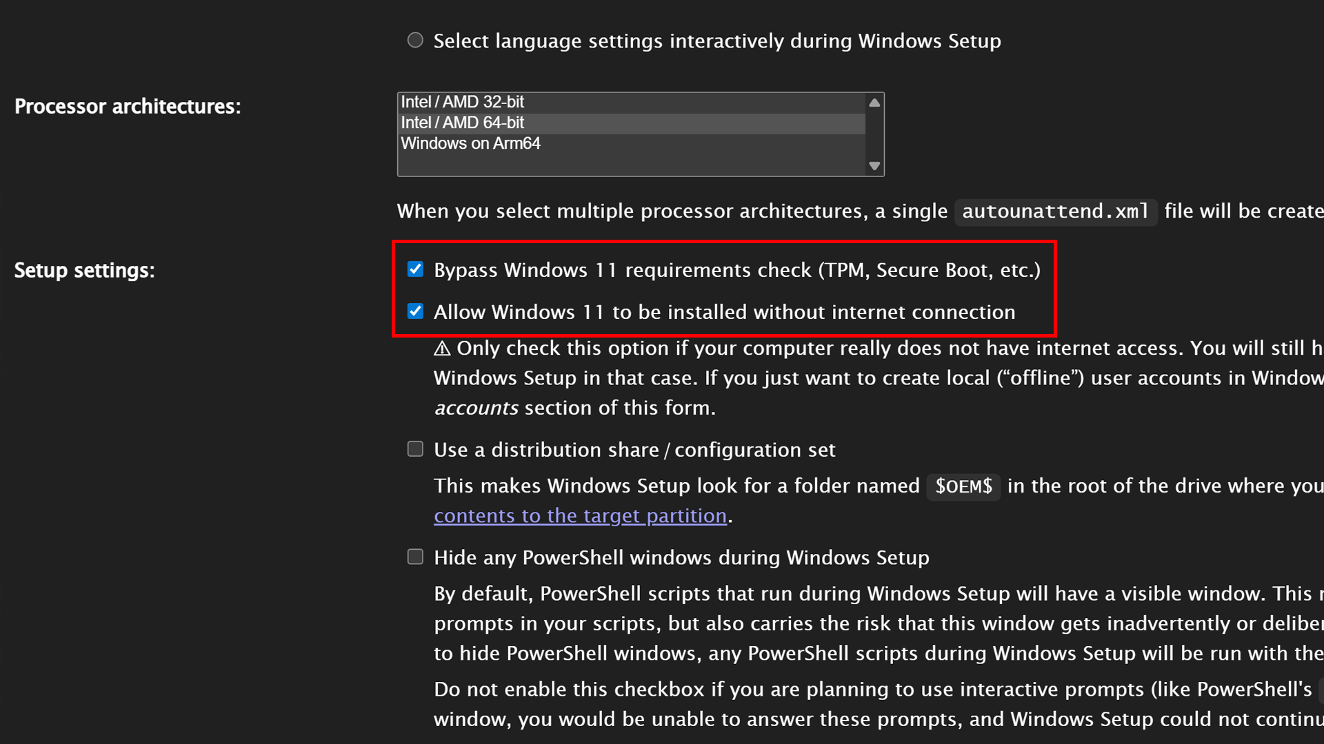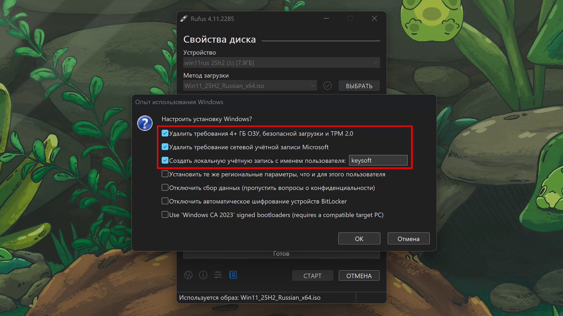Назад OfficialBRO 17 Янв 2026 (Отредактировано: 17.01.2026) 43 0 Как установить Windows 11 без интернета и аккаунта Microsoft Содержание статьи [ скрыть ] Почему Microsoft это запрещает? Способ 1: Принудительное создание локальной учетной записи Способ 2. Подготовка флешки с помощью Rufus Способ 3. Файл ответа Инструкция по применению: Итог При установке Windows 11 (особенно актуальных версий 24H2 и 25H2) пользователи сталкиваются с жестким требованием: «Давайте подключим вас к сети». Без интернета и входа в аккаунт Microsoft кнопка «Далее» просто не активна. Тем не менее, существует рабочий способ обойти это ограничение и создать старую добрую локальную учетную запись. Почему Microsoft это запрещает? Для компании ваш аккаунт — это точка входа в экосистему: синхронизация с OneDrive, история в Edge, покупки в Store и, конечно, сбор телеметрии для ИИ-функций. Именно поэтому корпорация старается максимально усложнить процесс настройки системы «офлайн». Способ 1: Принудительное создание локальной учетной записи Этот метод работает на всех редакциях Windows 11 (Pro, Home, LTSC) и является универсальным. Чтобы им воспользоваться, выполните следующие шаги: 1. Дойдите до этапа подключения к сети. 2. Нажмите комбинацию клавиш Shift + F10 (на некоторых ноутбуках Shift + Fn + F10). Откроется командная строка. 3. Введите команду: start ms-cxh:localonly и нажмите Enter. 4. После этого поверх экрана настройки мгновенно откроется стандартное окно создания локальной учетной записи. 5. Введите имя пользователя, по желанию пароль и нажмите «Далее». 6. В результате после завершения настройки вы сразу попадете на рабочий стол. Способ 2. Подготовка флешки с помощью Rufus Если же вы только собираетесь записывать образ, лучше сделать это через утилиту Rufus. При создании загрузочной флешки программа предложит меню «Опыт использования Windows», где можно заранее проставить галочки: Снять требование 4 ГБ ОЗУ, Secure Boot и TPM 2.0. Снять требование учетной записи Microsoft. Автоматически создать локального пользователя с вашим именем. Кстати, более подробную информацию о создание образа Windows 11 с помощью Rufus вы можете прочитать в отдельной статье на нашем сайте. Способ 3. Файл ответа В случае, если у вас уже есть готовая флешка с образом, этот способ будет самым простым. Инструкция по применению: 1. Прежде всего, воспользуйтесь онлайн-генератором (например, schneegans.de), чтобы не писать код вручную. 2. В разделе Setup settings выберите пункт «Allow Windows 11 to be installed without internet connection». Кроме того, здесь же можно отметить обход требований к железу (TPM, Secure Boot). 3. Ниже, в разделе User accounts, выберите «Add a local («offline») user account interactively during Windows Setup». 4. Затем прокрутите страницу вниз и нажмите «Download .xml file». Скачается файл с названием autounattend.xml. 5. Наконец, скопируйте этот файл прямо в корень своей загрузочной флешки (туда, где лежат папки sources, boot и т.д.). Теперь при установке Windows сама «увидит» файл и пропустит все раздражающие этапы настройки, создав локального пользователя без лишних вопросов. Итог Подводя итог, можно сказать, что хотя Microsoft и стремится привязать каждого пользователя к своим онлайн-сервисам, способы сохранить приватность и использовать локальную учётную запись всё ещё существуют. Выбирайте тот метод, который вам удобнее: быструю команду в процессе установки или автоматизацию через Rufus и файл ответов. В завершение напомним: какая бы учётная запись ни была выбрана, любая версия Windows требует лицензионной а