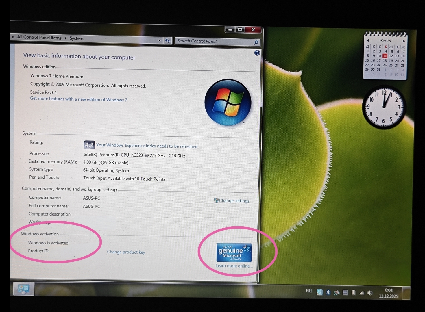 Лицензионный ключ активации для Windows 7 Home Premium (Домашняя расширенная)